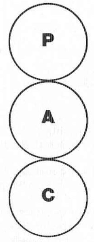 The easiest way to do this is to use the PAC model, or what is known as the Ego State Model. Within TA, an Ego state is considered to be a set of related behaviours, thoughts and feelings (Joines 1987). The 3 ego states are Parent, Adult and Child.